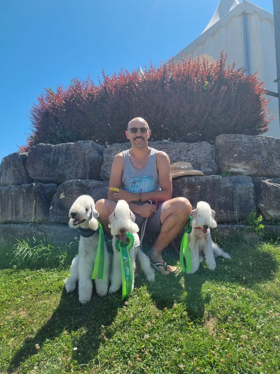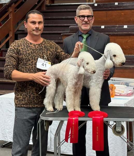 Daniel Kretzinger stellte seine beiden Bedlingtons in der Jugendklasse aus; beide erhielten V1, JCAC, JVDH, Twix wurde Bester Junghund und Best of Breed, Aaja Best of Opposite Sex.